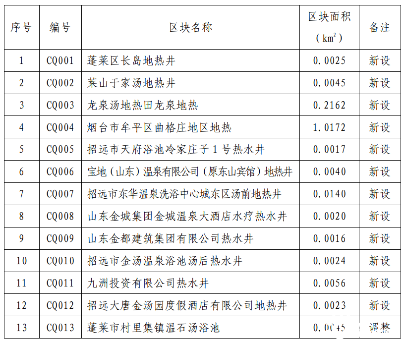 規(guī)劃期內(nèi),共設(shè)置地?zé)峥辈?/a>區(qū)塊2處,分別為山東省棲霞市惠禾·艾山地區(qū)地?zé)崞詹楹?a href="http://m.bdpks.com/t/山東.html" >山東省棲霞市長春湖·霞光地區(qū)地?zé)崞詹?,投放時(shí)間為2022年。規(guī)劃地?zé)嶂攸c(diǎn)開采區(qū)1處,位于招遠(yuǎn)市東湯地?zé)崽?/a>。重點(diǎn)開采區(qū)內(nèi)要嚴(yán)格按照開采規(guī)劃區(qū)塊優(yōu)先投放采礦權(quán),鼓勵(lì)支持礦山企業(yè)整合重組,優(yōu)化開發(fā)布局,提高資源利用效率。