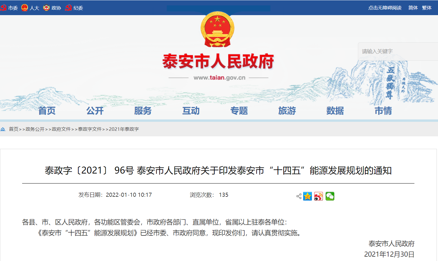 近日,山東省泰安市人民政府印發(fā)《泰安市“十四五”能源發(fā)展規(guī)劃》(以下簡(jiǎn)稱《規(guī)劃》)。“十四五”期間,泰安市圍繞堅(jiān)持“創(chuàng)新驅(qū)動(dòng)、綠色低碳、效率優(yōu)先、多元互補(bǔ)、智能共享”的基本原則,加快構(gòu)建清潔低碳、安全高效的現(xiàn)代能源體系,深入推進(jìn)能源生產(chǎn)和消費(fèi)方式變革,進(jìn)一步促進(jìn)全市現(xiàn)代能源經(jīng)濟(jì)高質(zhì)量發(fā)展。
