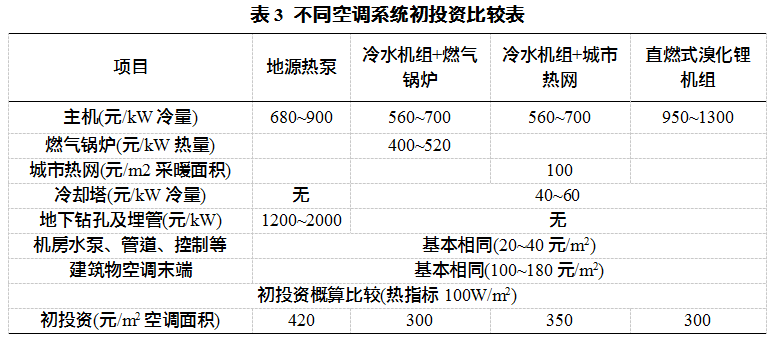 3)不同空調(diào)系統(tǒng)初投資費(fèi)用對(duì)比