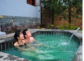 | 江西法水天沐溫泉地風(fēng)景 資溪法水天沐溫泉日流水量1600噸以上,水溫43.5℃,水清透明、無(wú)味,屬優(yōu)質(zhì)碳酸型溫泉。 |
