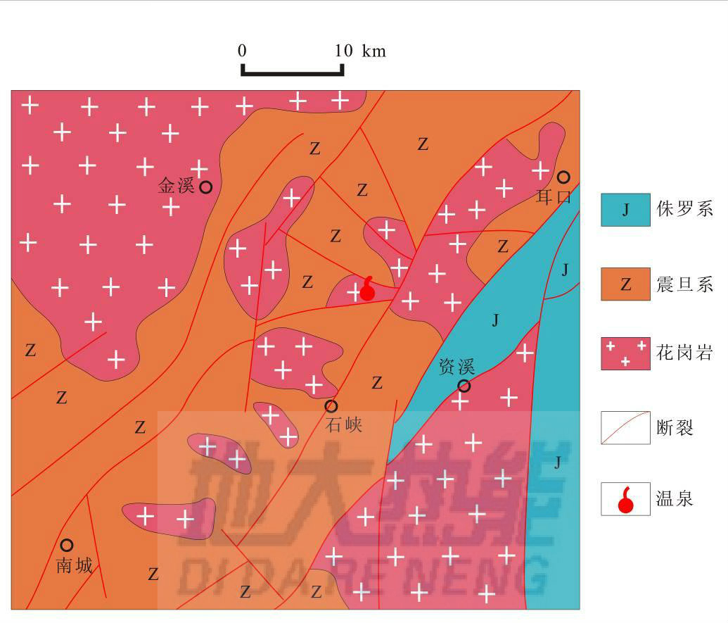 江西法水天沐溫泉成礦機(jī)制![]() ![]() 江西法水天沐溫泉區(qū)域地質(zhì)圖 |