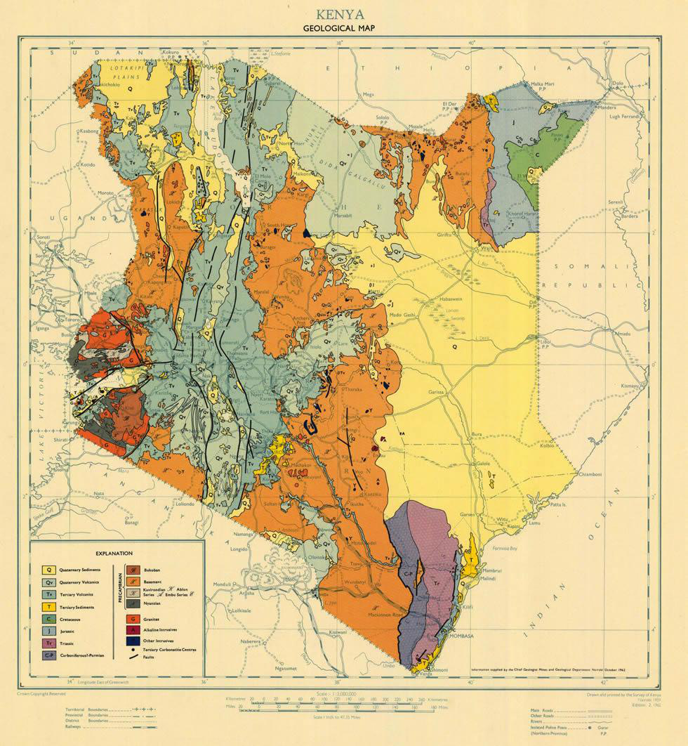 奧爾卡里亞地?zé)崽?/a>(Olkaria geothermal field)位于肯尼亞首都內(nèi)羅畢西北約125千米的肯尼亞裂谷地?zé)釒?/a>內(nèi)。肯尼亞58.2646萬平方公里,地跨赤道,東與索馬里為鄰,北與埃塞俄比亞、南蘇丹共和國接壤,西與烏干達(dá)交界,南與坦桑尼亞相連。東南瀕印度洋,海岸線長536公里,沿海為平原地帶,其余大部分為平均海拔1500米的高原。東非大裂谷東支縱切高原南北,將高地分成東、西兩部分。大裂谷谷底在高原以下450-1000米,寬50-100公里,分布著深淺不等的湖泊,并屹立著許多火山。北部為沙漠和半沙漠地帶,約占全國總面積的56%。河流、湖泊眾多,最大的河流為塔納河、加拉納河。