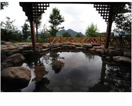 貴州黃平浪洞溫泉風(fēng)景黃平浪洞森林溫泉度假山莊位于貴州省黔東南州黃平北面浪洞鄉(xiāng)溫水塘村,處于兩州一市交界(黔東南州、黔南州和遵義市),更是處在舞陽河國家級風(fēng)景名勝區(qū)范圍內(nèi),具有較好好區(qū)位優(yōu)勢。四周依山傍水,原始植被保存良好,是天然的氧吧。浪洞溫泉在100平方米范圍內(nèi)由5~7年泉眼平地,噴涌而出,日流量每天1000噸左右。溫泉無色,甜味,井口水溫49℃,根據(jù)SI02含量計(jì)算,推測靠巖面附近溫度可達(dá)60℃,按國家礦泉水溫度分類標(biāo)準(zhǔn),為高熱礦泉水(42-100℃)。該溫泉地?zé)崴?/a>化學(xué)類型為HCO3-NA,屬弱堿性(PH=8),低硬度、低礦化度的極軟水,符合飲用水標(biāo)準(zhǔn)。